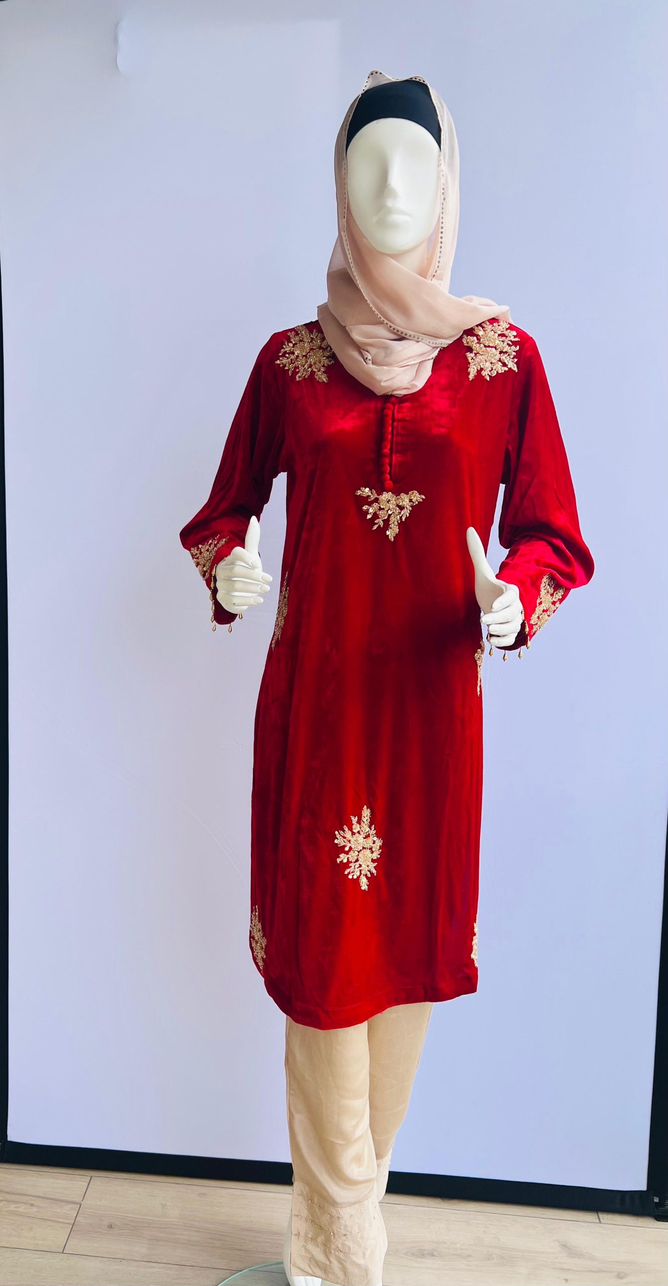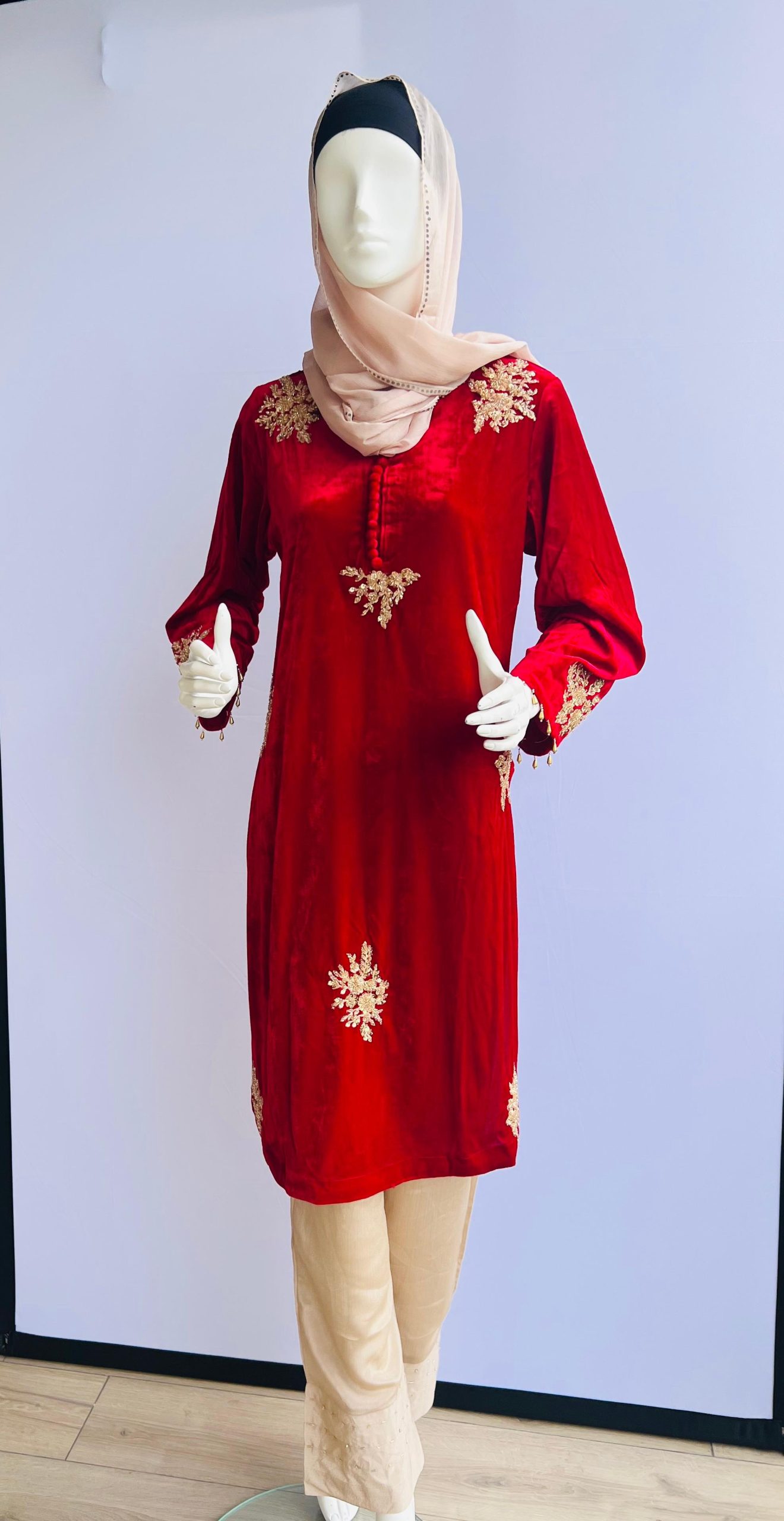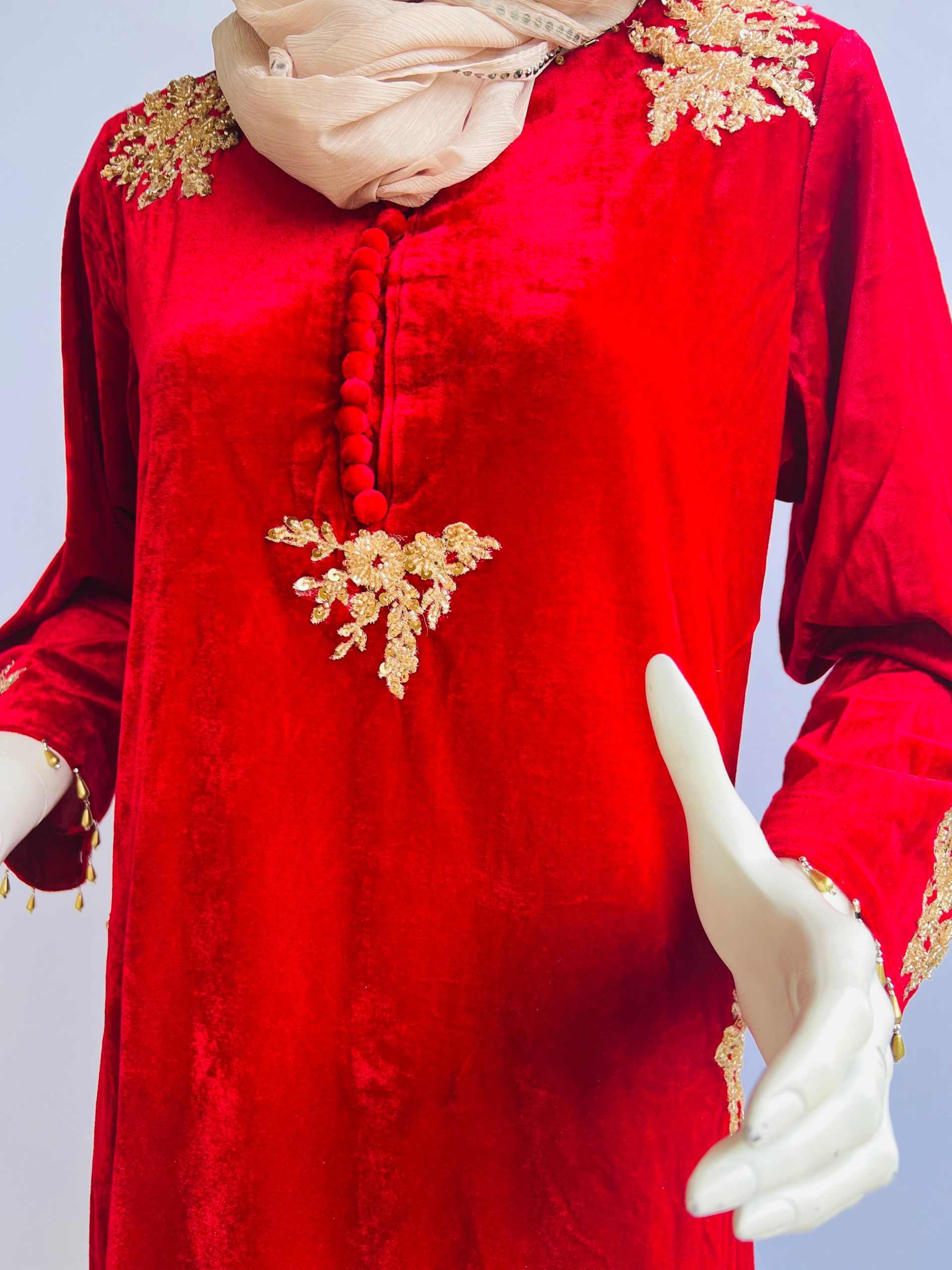 Fabric (Kurta): Rich velvet in deep red